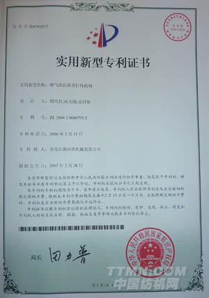 噴氣織機(jī)產(chǎn)品質(zhì)量合格證書 粗紗機(jī)產(chǎn)品質(zhì)量合格證書