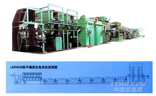 平幅進布→二輥臥式軋車→偶爾透風(fēng)架→還原蒸箱→四格不銹鋼平洗槽→氧化透風(fēng)架→鑄鐵帶蓋平洗槽→皂蒸箱→長蒸箱→鑄鐵帶蓋平洗槽→敞口平洗槽→二柱烘筒烘燥機槽→平幅落布