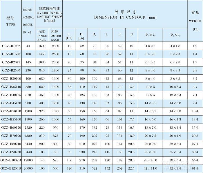 單項離合器系列GCZ-B