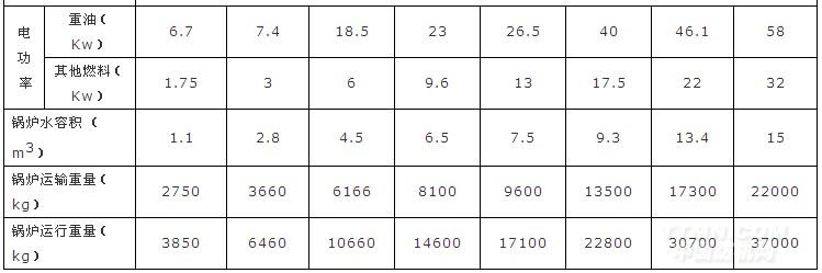 WNS系列承壓熱水鍋爐性能參數表