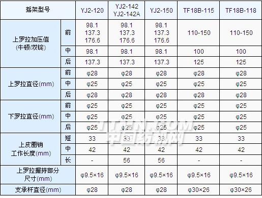 YJ2系列搖架用于三羅拉雙皮圈牽伸型式的細紗機上,適用于棉及51mm以下(120型),60mm以下(142型)和65mm以下(150型)纖維長度的純紡或混紡。如采用滑溜牽伸型式,則適紡纖維長度可達76mm(120型)和120mm(142和150型)。