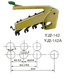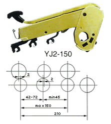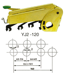 4、鎖緊機構采用四連桿機構,加卸壓輕便,鎖緊可靠。搖架的掀起定位角為:YJ2系列-45(普通型)和80(大掀角型)