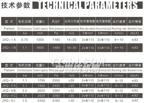 產(chǎn)品型式:JXQ-I為龍骨式蝸輪副傳動巡回吹吸清潔機 JXQ-II為龍帶傳動巡回吹吸清潔機