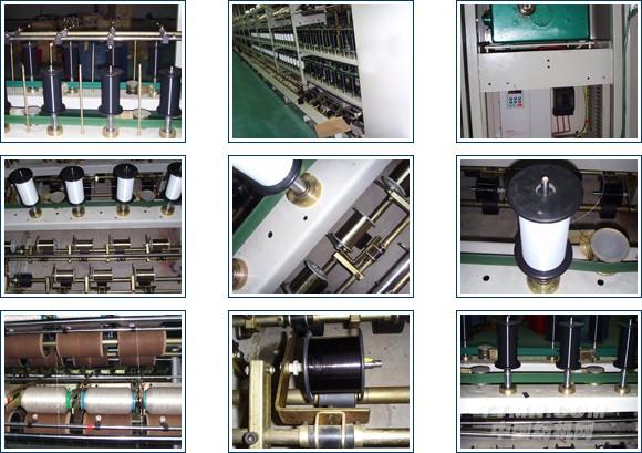 本機(jī)主要生產(chǎn)氨綸包覆紗(即“萊卡”),由一根內(nèi)芯氨綸絲外包一根“S”向或“Z”向的加彈滌綸絲合成,廣泛用于內(nèi)衣、襪子、緊身衣等。