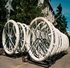 產品結構:玻璃鋼穿管器主要有玻璃鋼覆塑桿、手動推車、牽引輪、牽引頭、對接頭和誘導頭等金屬配件組成。