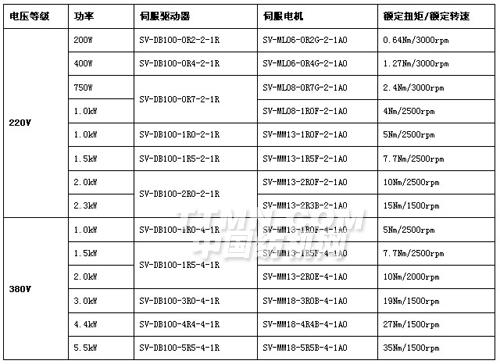 伺服系統標準配置表