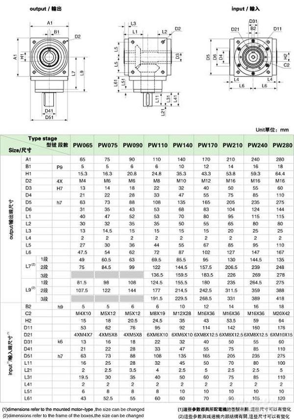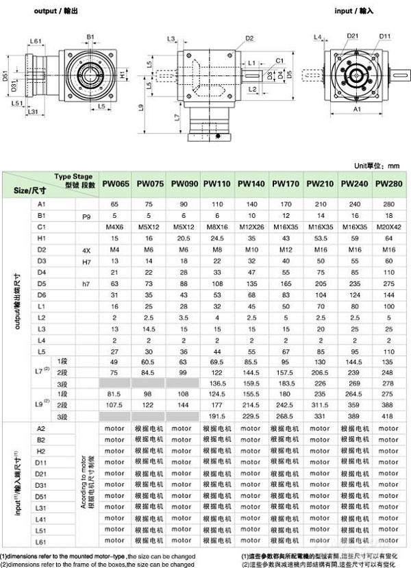PW 系列精密行星減速機技術(shù)參數(shù)