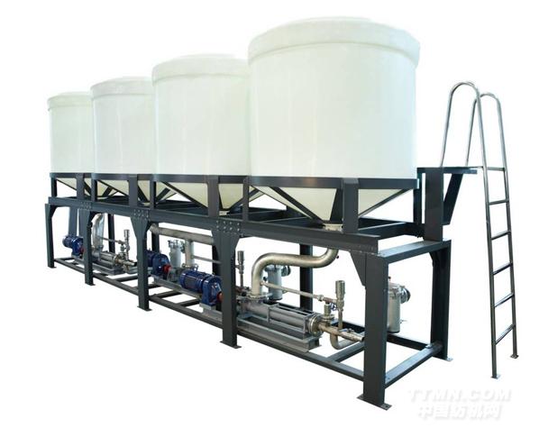 糊料準(zhǔn)備系統(tǒng)根據(jù)印花糊料的工藝要求,通過工控機和PLC控制,進行自動加水、自動攪拌、管路過濾輸送及配料自動稱量和粘度控制,以保證印花色漿調(diào)制的穩(wěn)定性和高效率。