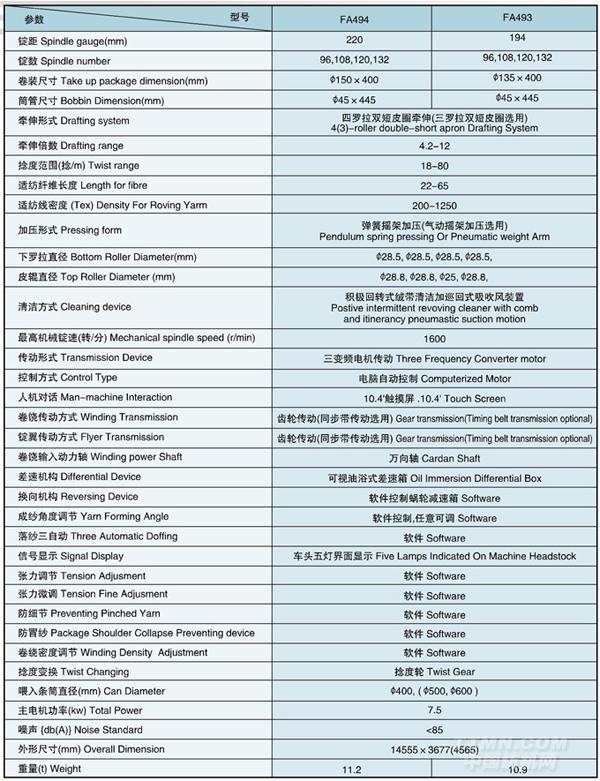 - [產品]-->FB494/FB493毛紡懸錠粗紗機