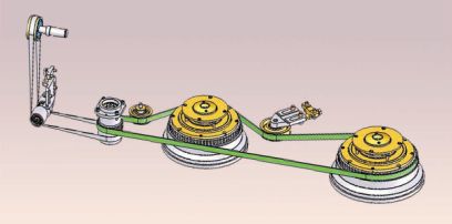 圈繞傳動(dòng):圈繞傳動(dòng)采用平皮帶垂直傳動(dòng),削弱停車(chē)慣性力對(duì)機(jī)器運(yùn)轉(zhuǎn)的影響。采用與棉條運(yùn)動(dòng)方向近似的螺旋曲線斜管出條,圈條盤(pán)采用鑄造式結(jié)構(gòu),組裝后整體校正動(dòng)平衡。設(shè)計(jì)多檔圈條張力和圈繞比數(shù)值,滿足成形的需要。