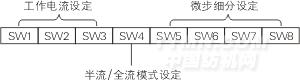 DM856驅動器采用八位撥碼開關設定細分精度、動態電流和半流/全流。詳細描述如下: