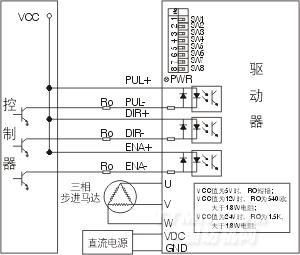 脈沖控制信號:脈沖上升沿有效;PUL-高電平時4-5V,低電平時0-0.5V。為了可靠響應脈沖信號,脈沖寬度應大于1.2μs。如采用+12V或+24V時需串電阻。