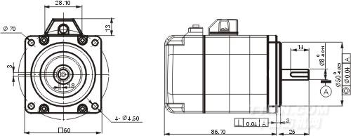 200W交流伺服電機ACM602V36A、ACM602V60A安裝尺寸如下所示: