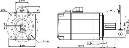 100W交流伺服電機ACM601V36安裝尺寸如下所示: