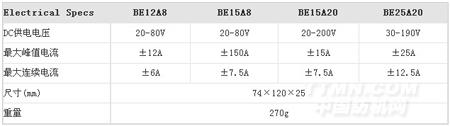 注:可驅動無刷DC伺服電機在電流環、電流環、速度環及位置環下工作,且具有四象限再生電功能,電機需帶霍爾傳感器,速度反饋可以來自霍爾傳感器,測試發電機或編碼器的信號。