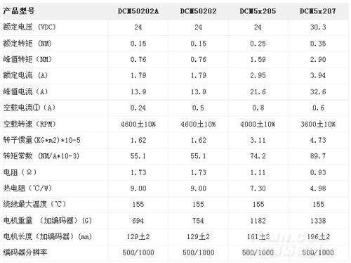 DCM直流伺服電機電氣參數