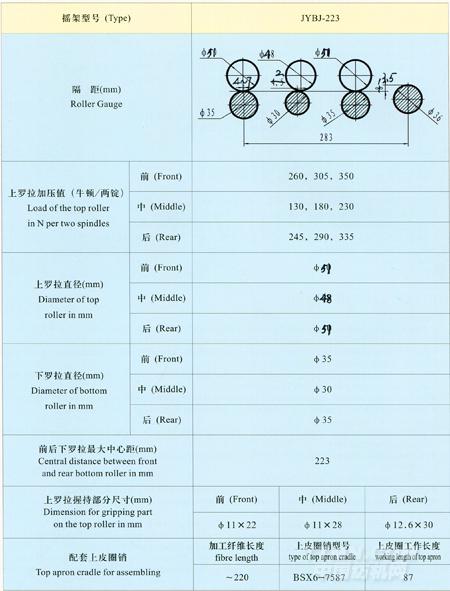 BYI-223型毛紡緊密紡板簧搖架主要技術參數