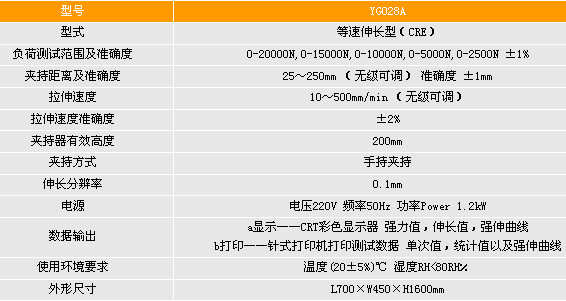 YG028A型萬能材料試驗機是采用PC機控制,按照等速伸長原理(CRE)工作,用于測定各種織物以及土工布的抗拉斷裂伸長,以及頂破和刺破強力和伸長,并將測試數據統計后由打印機輸出,需要時,也可打印強力伸長曲線。還可以測定其它復合材料的斷裂強力和斷裂伸長。