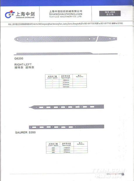 您所在的位置:紡機網(wǎng) >> 上海市中劍紡織機械有限公司 >> 劍帶-蘇爾壽-G6200 Saured S350