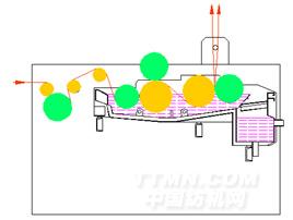 三輥式引紗+雙浸四壓式上漿機構示意圖