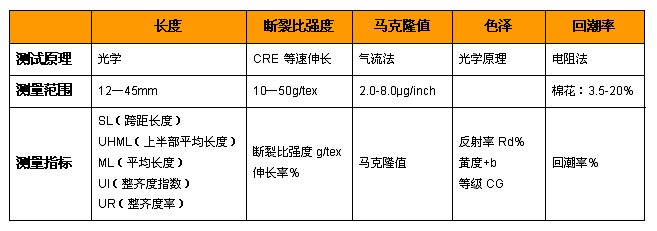 長纖維能增強紗線的強力,改善紗線條干和面料的外觀,同時長纖維能有效提高紡紗效率;纖維整齊度非常重要,它和纖維的長短有關,影響紗線的條干均勻度,強力和紡紗效率。通常,長度較長的纖維直徑更細,在紗線的橫截面內有更多的纖維根數。
