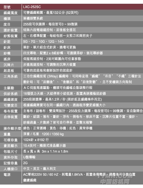 機器主要功能參數: