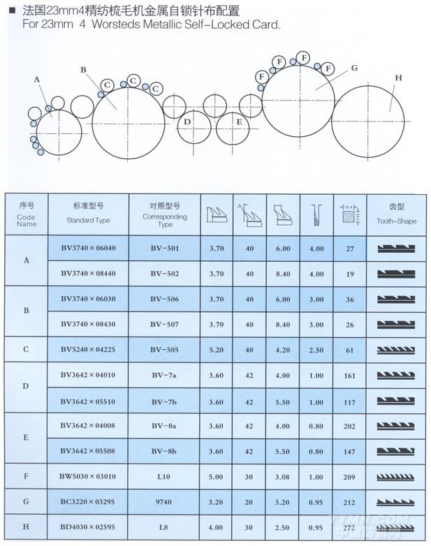 法國23mm4精紡梳毛機金屬自鎖針布配置