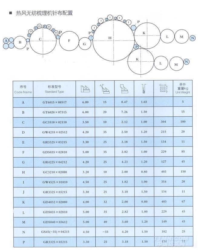 熱風(fēng)無紡梳理機針布配置