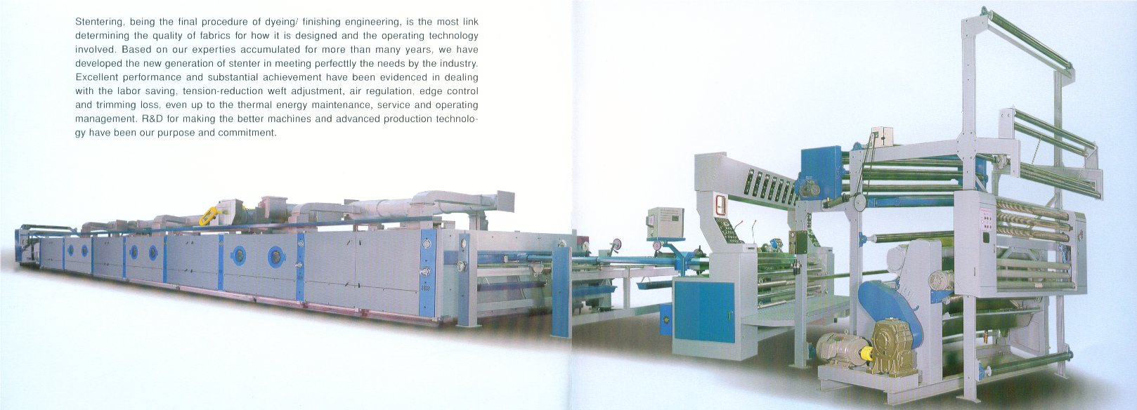 樹脂定型是染整工序最后最關鍵的程序,因此定型機的設計及操作技術成為決定織物品質重要的一環,乘福工業二十幾年的經驗改良成新生代定型機,針對業者需要對于節省人力及布匹張力的減少、緯紗的調整,風量的調節、布邊控制及切邊損耗乃至于熱能保持,維修工作,操作管理都有卓越表現及實際成果,而機械設備的研制及生產技術的發展是本公司創立的目的和宗旨。