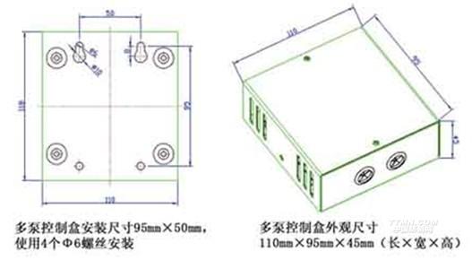 EPC50多泵控制盒適用于多泵控制(超過一拖二時選用),無需單獨電源,用10芯連接線和變頻主板連接即可使用,最大可以實現(xiàn)一拖八固定模式和一拖四輪換模式。