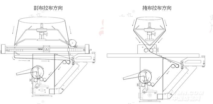 本機(jī)配備動(dòng)力拉壓布膠輪,使布匹於剖開(kāi)後垂直合併,於下拉時(shí)布面張力均勻,以便V形架分離布匹。
