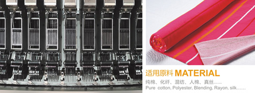 機臺特性*壓針刻度精準,完全達到進口機標準,省去大量調機時間。*采用航星立式變色頭:操作方便、不積塵、無沙尾、少飛毛。*航星變色頭、對于不同成分、粗細的編織原料,都能切割自如,夾線牢固。*控制系統采用最先進的微處理控制器、觸屏式面板。*采用高速三功位(成圈、集圈、浮線)電腦選針技術,可達到高速穩定的優越編織效果。