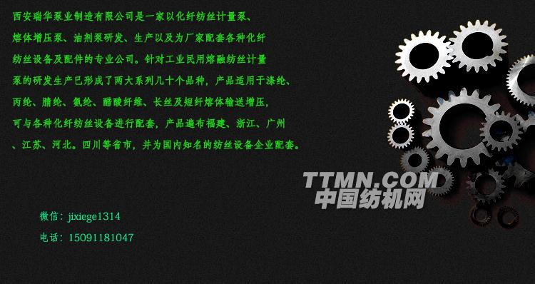 您所在的位置:紡機網 >> 西安瑞華泵業制造有限公司 >> 瑞華泵業化纖紡絲計量泵 熔體泵 短纖泵 高精度齒輪泵